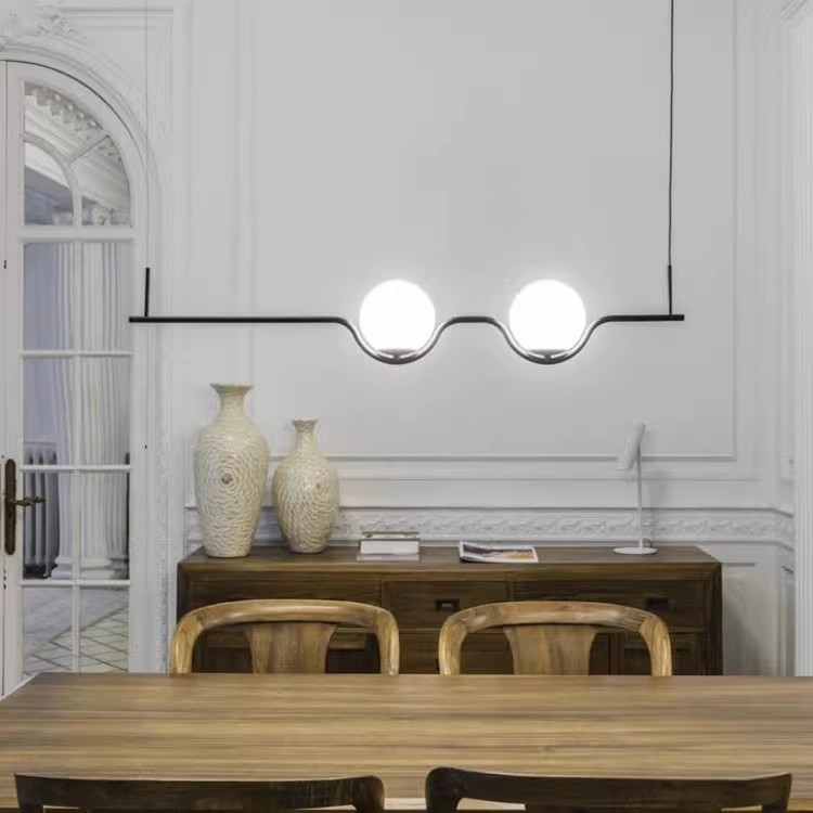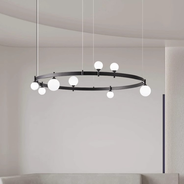 モダンシンプルで軽い贅沢なラインバッグハウス黒色塗装北欧円環ガラス球客間レストランシャンデリア