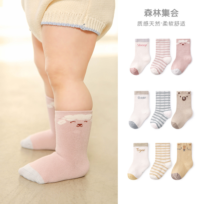 G324ベビー靴下卸売り春夏の薄いアニメ動物ソックス格子新生児男女赤ちゃん靴下