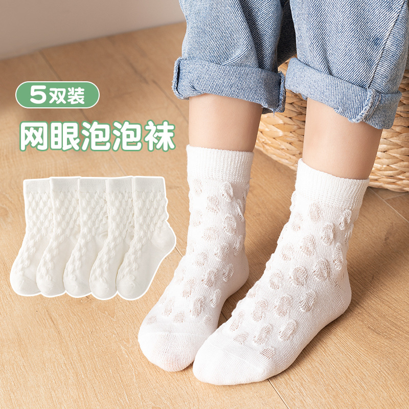 純色の網の目の泡の靴下の男の子の女の子の赤ちゃんの綿の中筒の靴下の子供の靴下の春夏の新型のソックスの新型