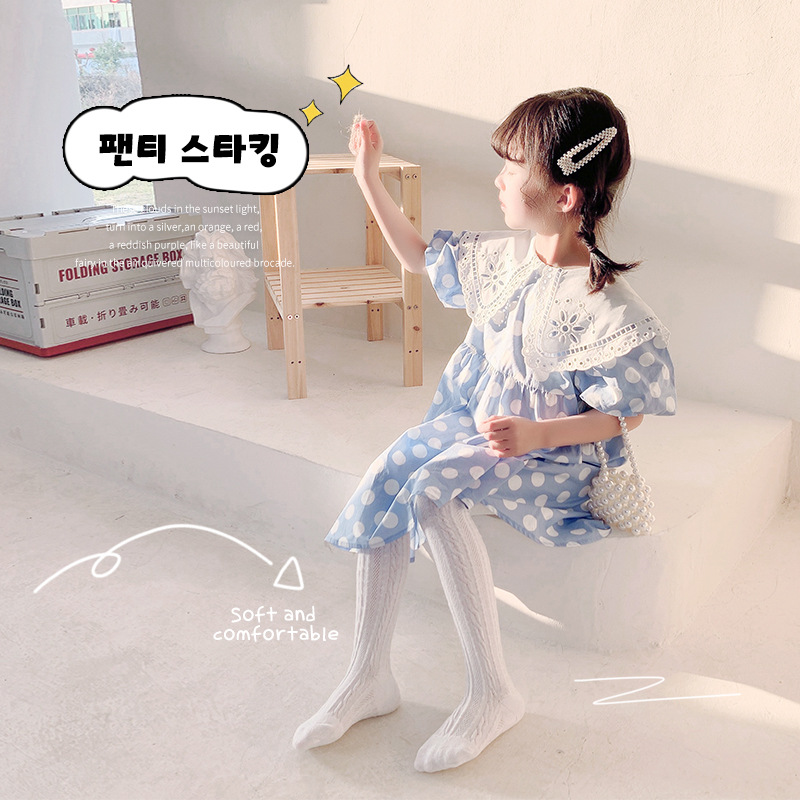 レトロな純色の麻花のタイツの女の子の赤ちゃんの縦の条のかわいい綿のレギンスの子供の靴下の春の夏の金