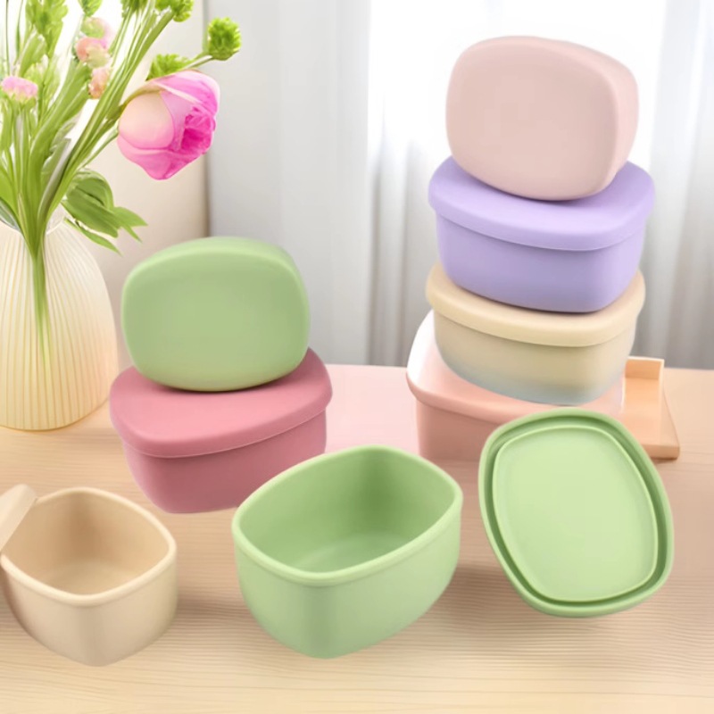 クロスボーダー新品シリコン弁当箱タッパー2 in 1シリコン弁当箱楕円2点セット学生児童弁当箱