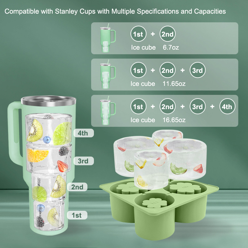 四葉形状Snleyカップ蓋付きシリコン氷金型はウイスキーなど多くのカップを冷却するのに適している。