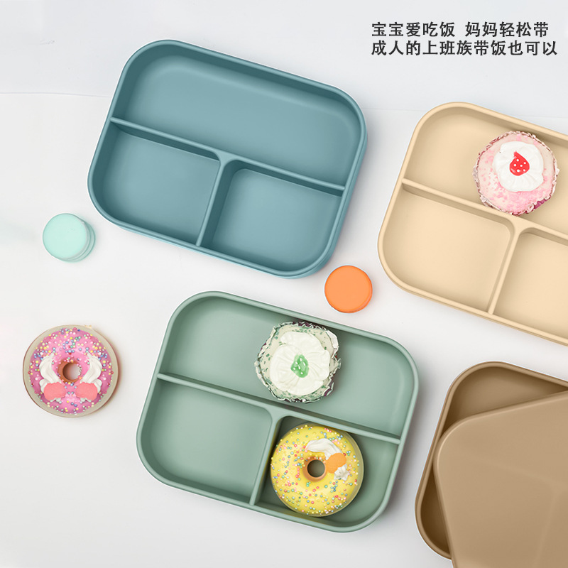 子供用シリカゲル食器補助食皿乳幼児用飼育食器一体式三格耐高温分格食事皿