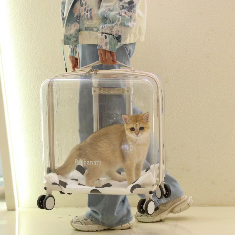小型ペットトロリー透明通気性ペット猫バッグ携帯旅行スーツケース透明猫ハンドバッグ