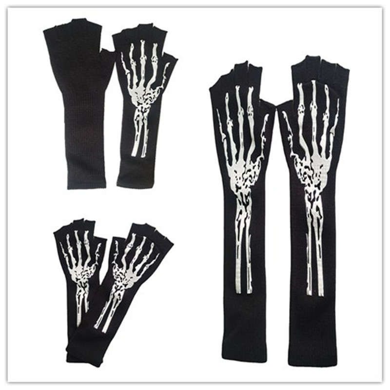 工場直販ハロウィン装飾手袋指なしハーフフィンガーハンドセットドレスアップ誤解小道具ロングスカル手袋ハーフフィンガー