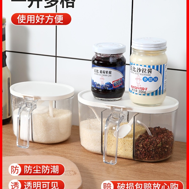 調味料ボックスコンビネーションセットキッチン家庭用塩瓶砂糖MSGスパイス一体型マルチグリッド調味料瓶3グリッド調味料瓶