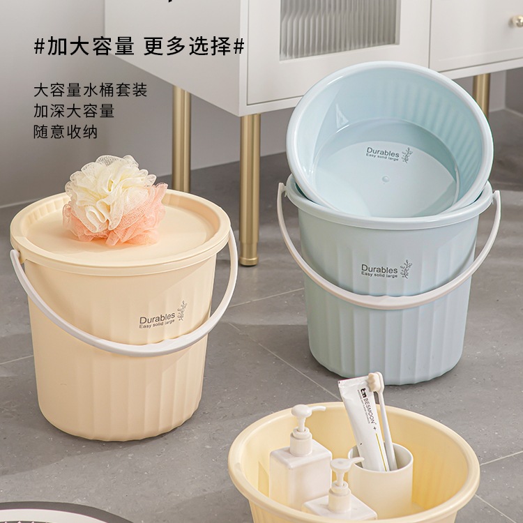 蓋付きバケツ家庭用水貯蔵バケツ厚みのある大型プラスチック製の小さなバケツ洗濯ポータブル学生寮バケツと洗面器セット