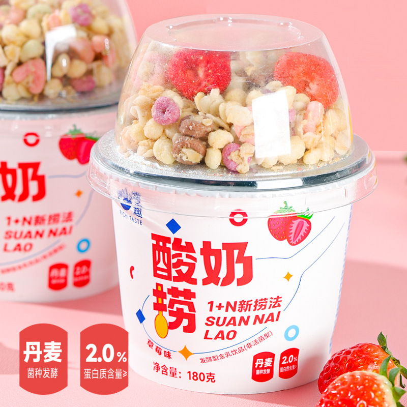 ヨーグルトをかき混ぜてイチゴのパイナップルの蜜をすくいます。