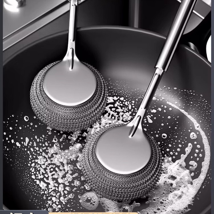 ステンレス鍋ブラシ、キッチン鍋洗い用スチールワイヤーボールブラシ、長柄食器洗い用クリーニングブラシ、糸が抜けない鍋洗い用ブラシ