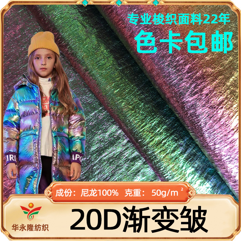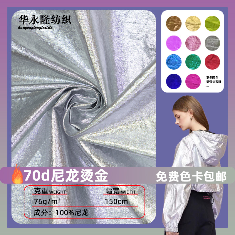 2021人気爆発金20dナイロン七彩箔押し生地虹グラデーション薄いダウンジャケット日焼け止め生地