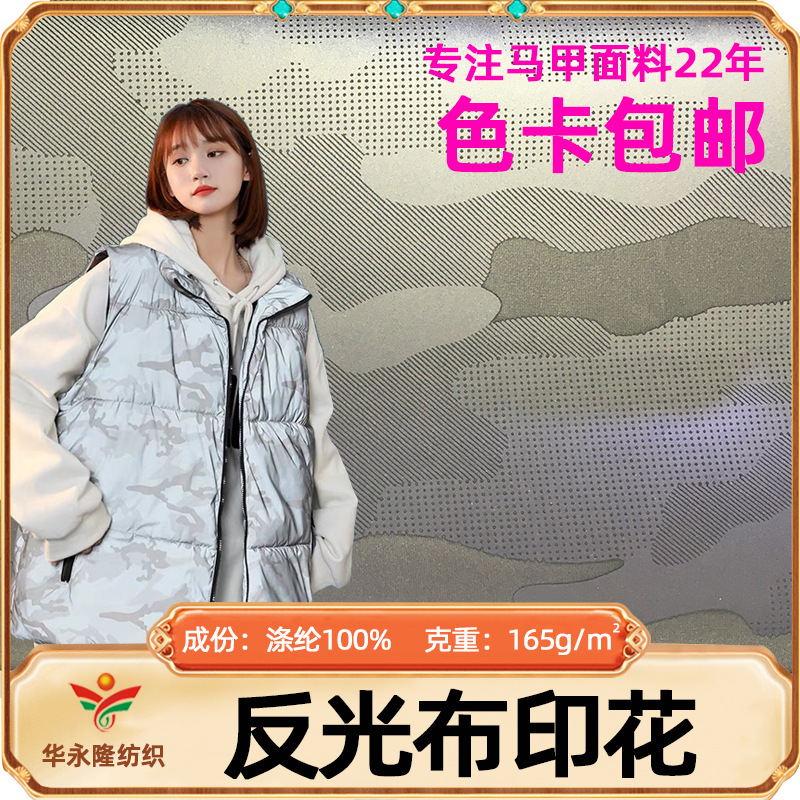 現物卸売り夜光生地迷彩反射生地夜光反射ハイライトダウンジャケット綿服ジャケット生地