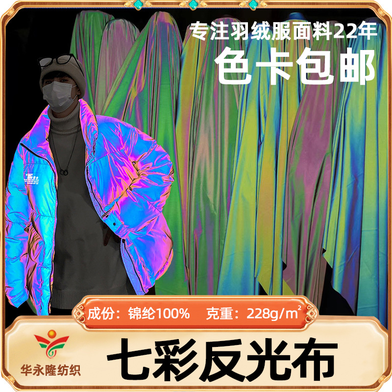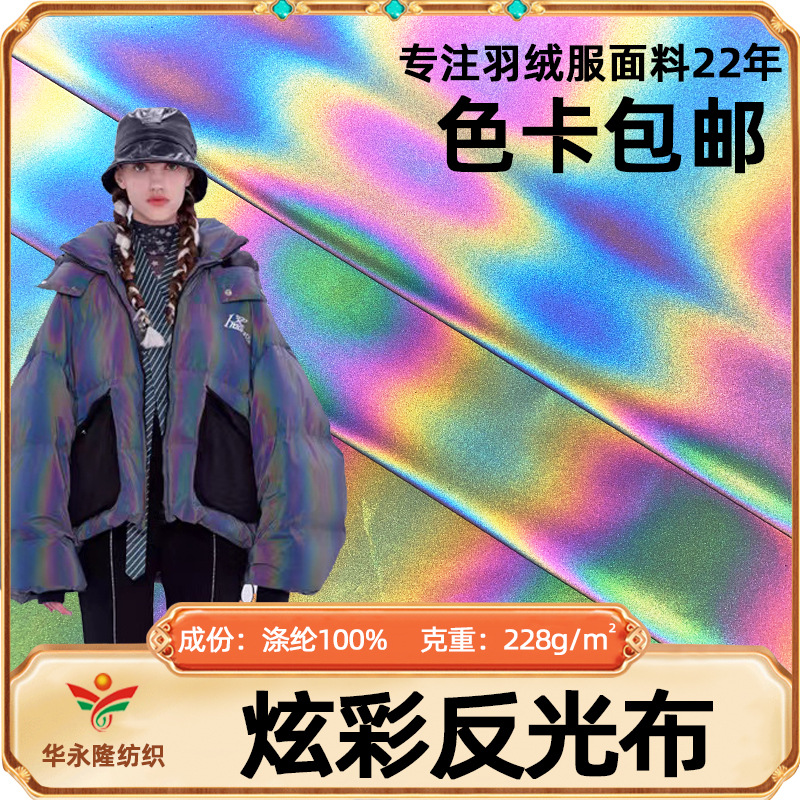 幻彩レーザー反射布夜光七色反射布地科学技術反射布カラフルダウンジャケット生地