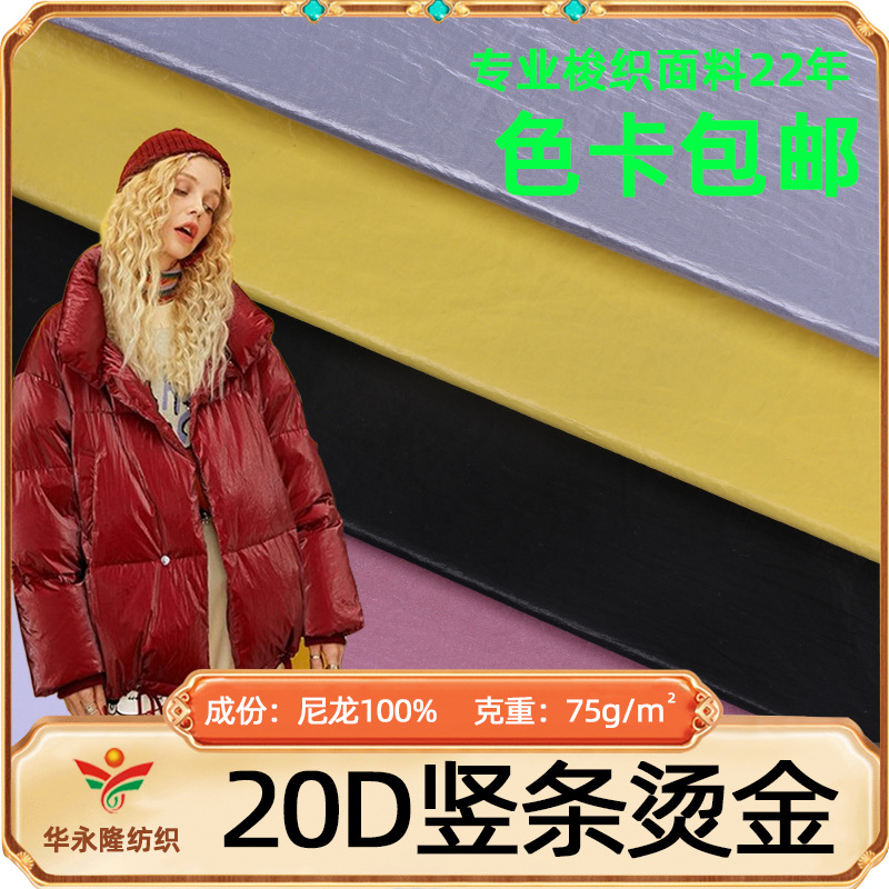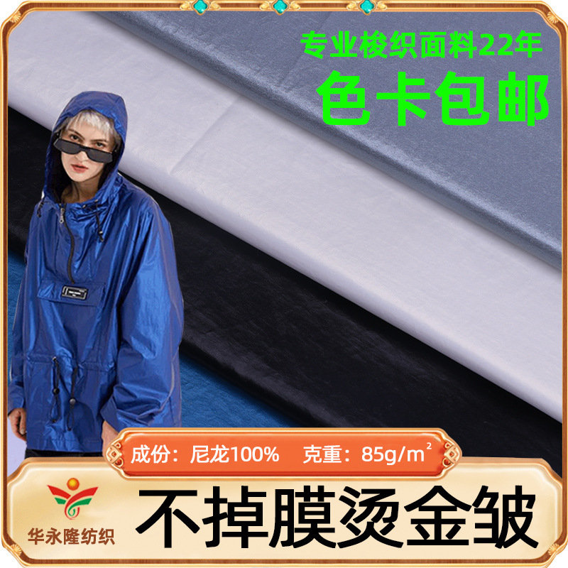 工場直販70dナイロン金属膜箔押しシワが落ちない膜生地風衣ダウンジャケット綿服生地現物