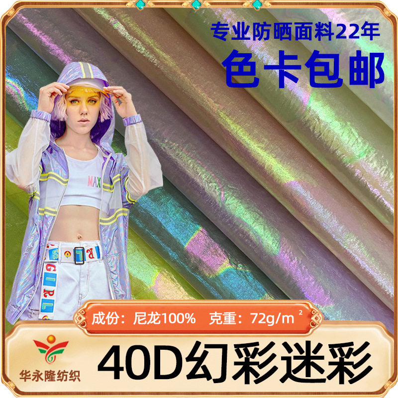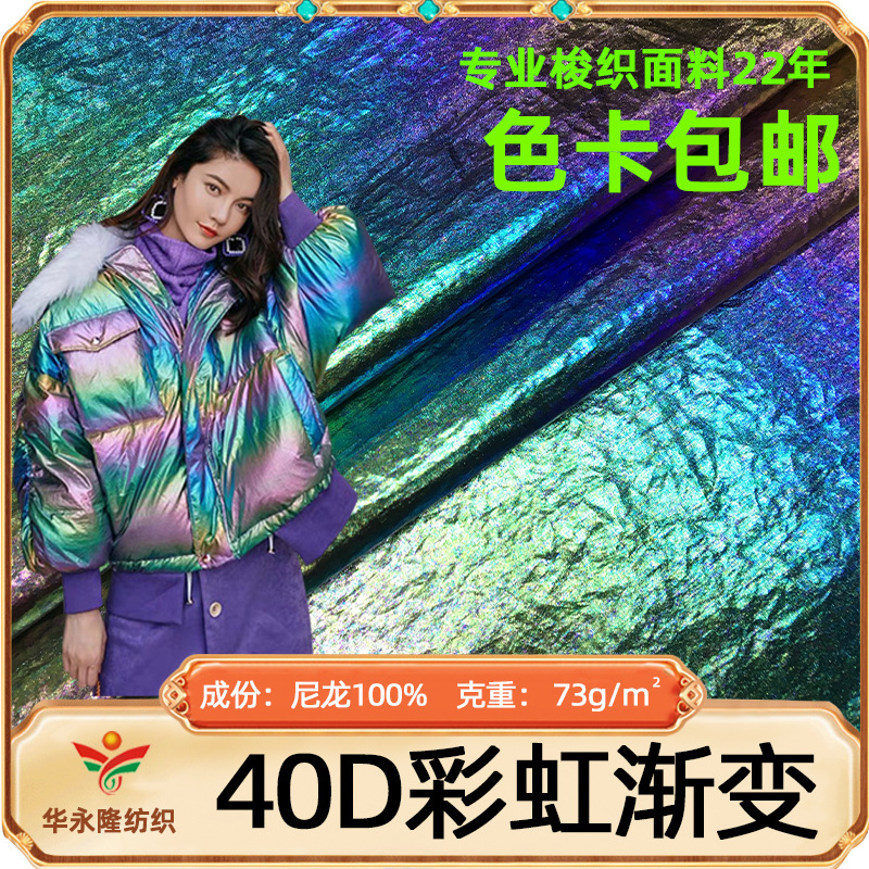2021新品40dナイロンシワ幻彩箔押し生地七彩虹風衣生地ダウンジャケット生地