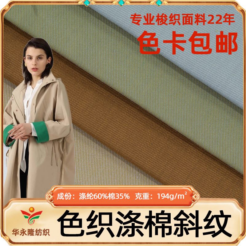 メーカー直販194g色織二色綾ポリエステル綿生地秋冬男女ファッション風衣スーツ生地