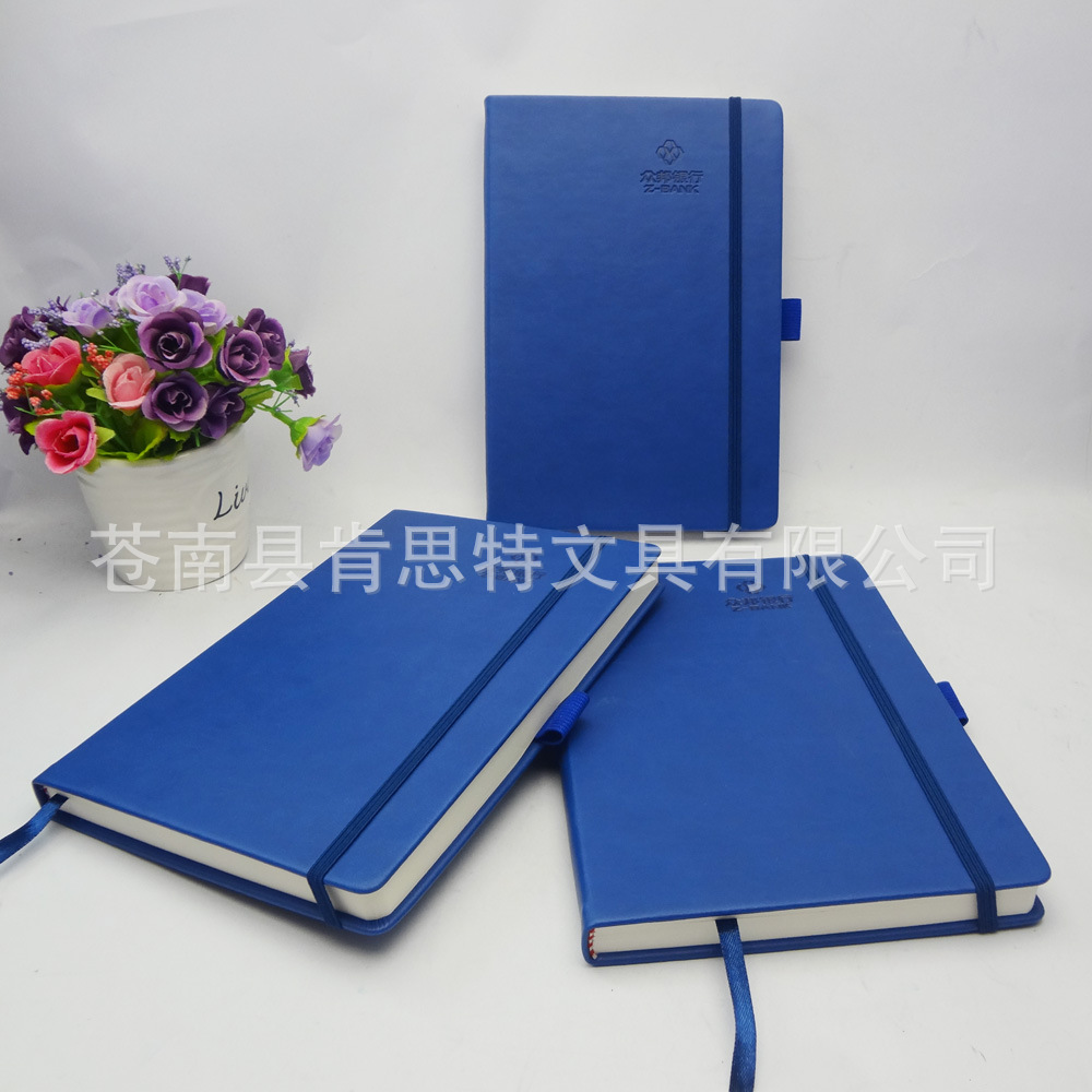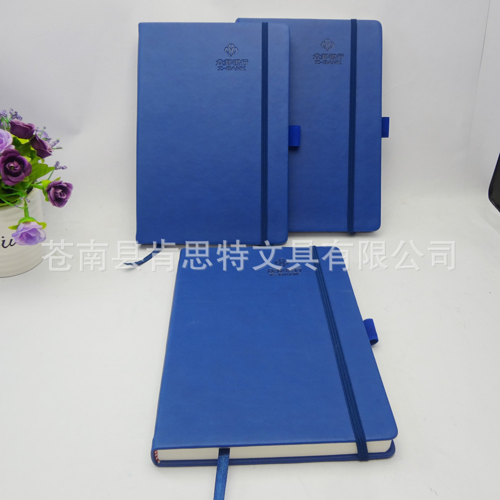 卸売り紺色puストラップノート銀行は客先の皮質メモ帳にペンカバーを持っている