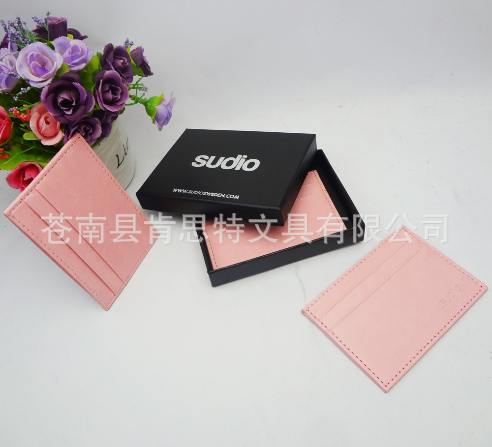 卸売りはロゴのピンクのpuのカードを印刷して美しくて高級なピンクの皮革のカードをセットして輸出します。