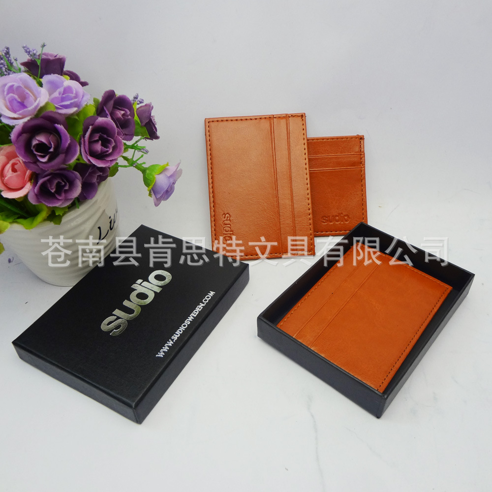 エンボス印刷ロゴ茶色革カードカバービジネスメンズ革カードカバーカードバッグ便利携帯カードバッグメーカー卸売り