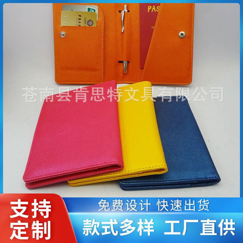 卸売りは革のパスポートカバーとボタン付きの革のパスポートクリップ温州蒼南メーカーを模倣しています。