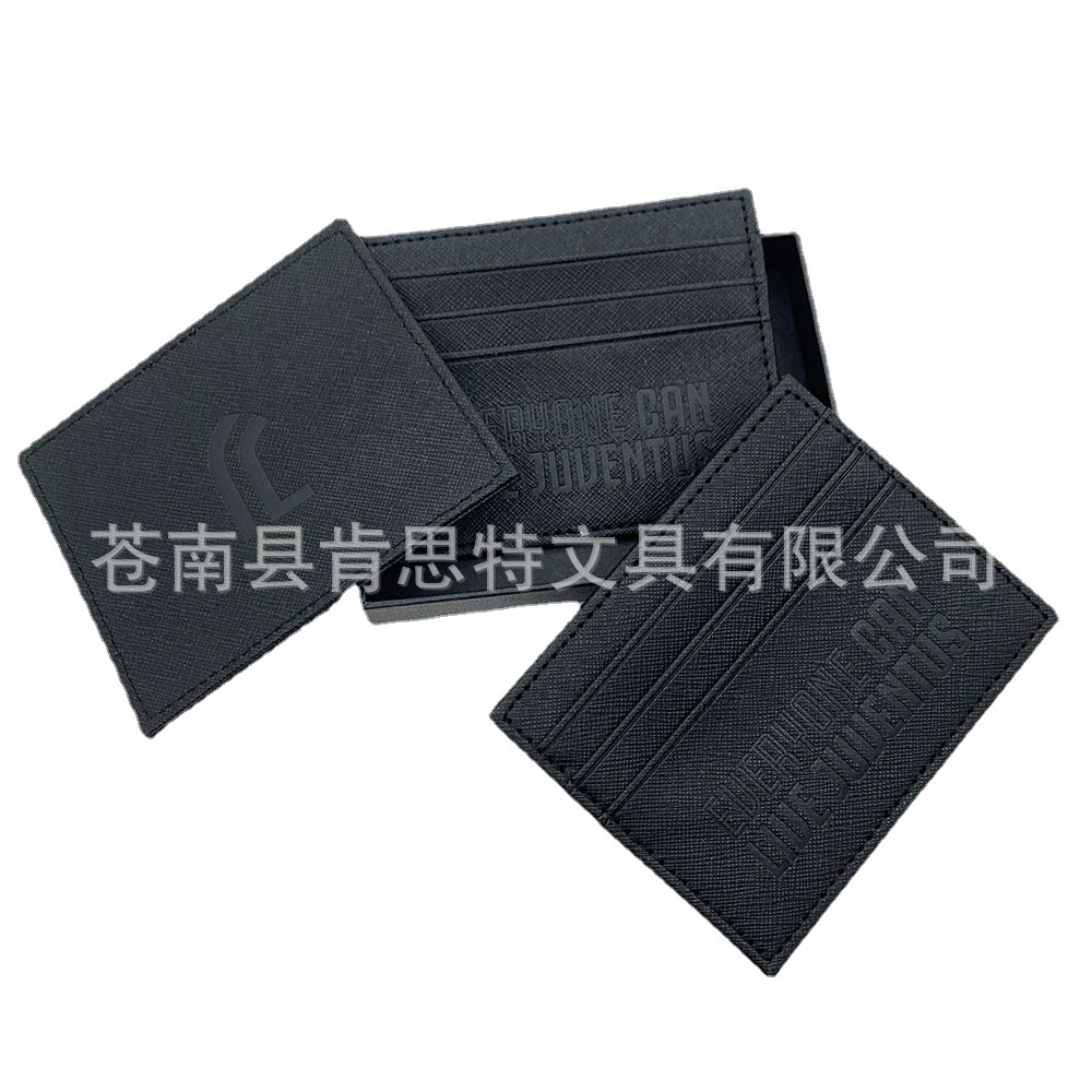 エンボス印刷ロゴ黒十字紋革クレジットカード銀行カードクリップ直角革カードバッグ安い革カードケース