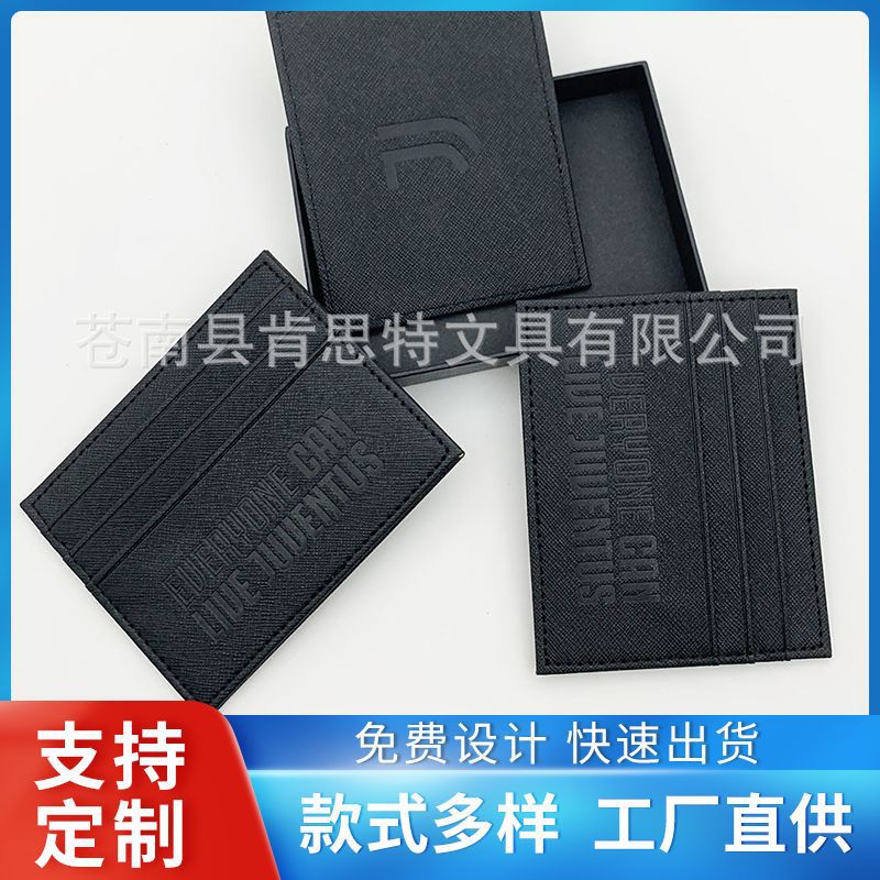 卸売り黒模造pu革カードカバー天地蓋ギフトボックス包装銀行カード皮質カードケース卸売り