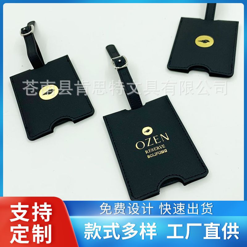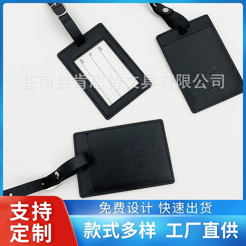 蒼南メーカーの圧印logo黒色は皮の荷物の札の皮質のスーツケースの搭乗する札のpuの皮革の登録の札をまねます。