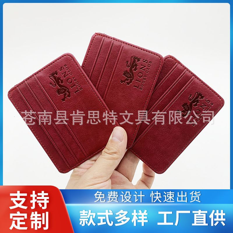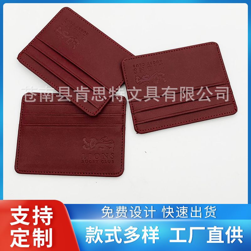 エンボス印刷ロゴワインレッドpuレザーカードバッグ六カードレザーカードカバークレジットカード銀行ギフトカードクリップ卸売り