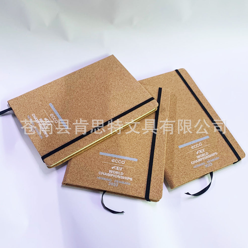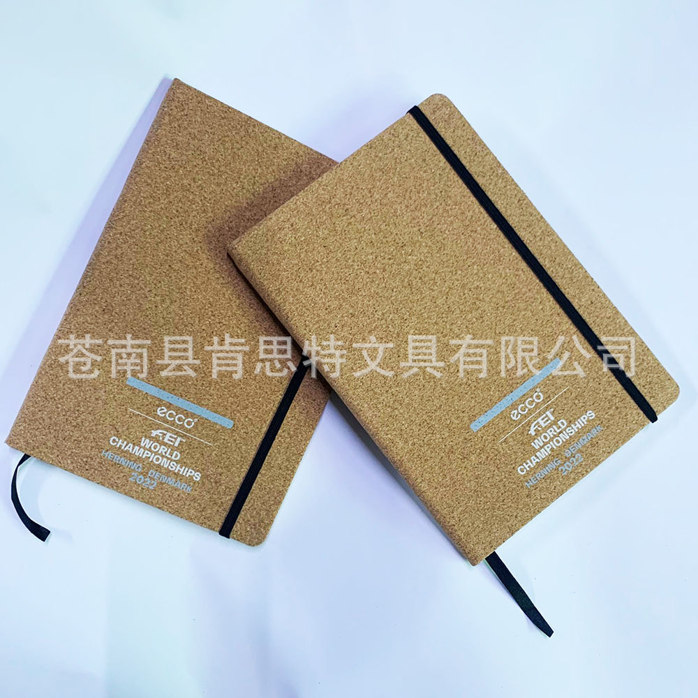 卸売りシルク印刷2色ロゴコルクノートコルク黒ゴムノートa5対外貿易輸出