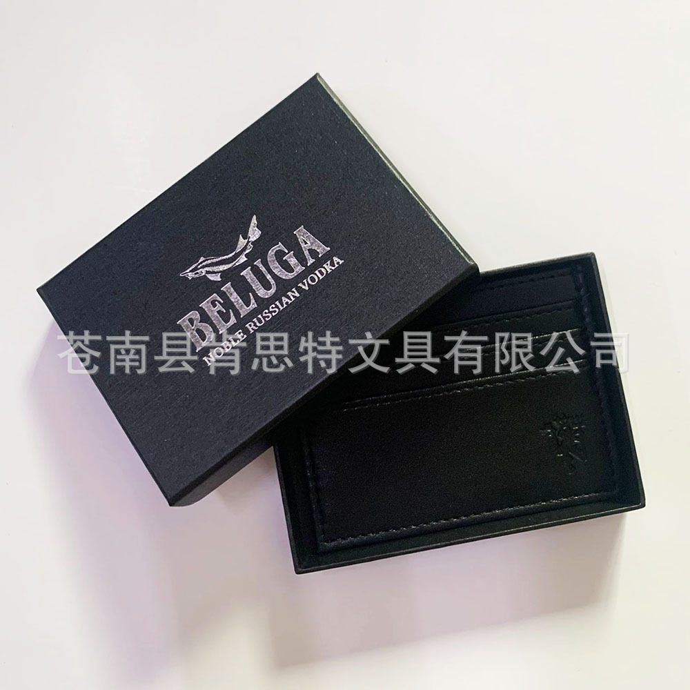 卸売りはロゴの黒色の皮革のカードを印刷してビジネスの皮質の多カードのカードカバーギフトの箱の包装のカードのカバーを詰めます。