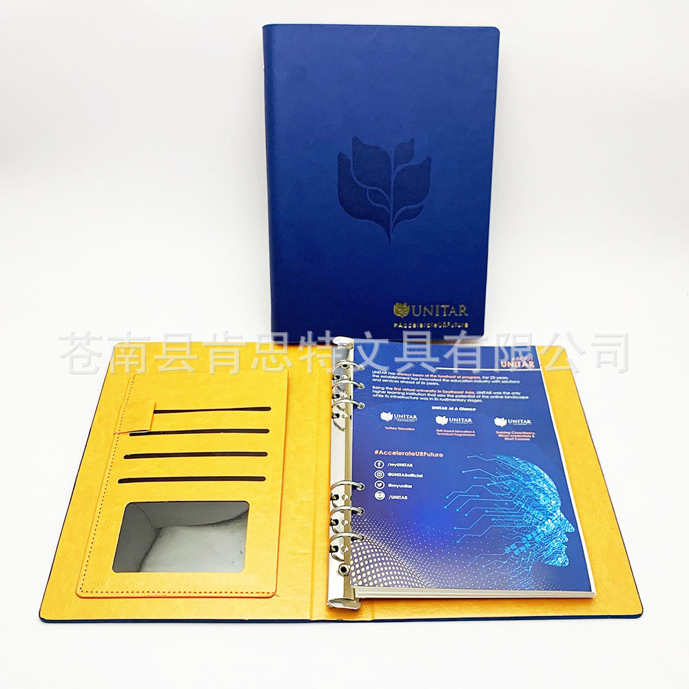 卸売り圧印ロゴ紺色変色puバインダーノート32k皮面バインダー手帳対外貿易輸出