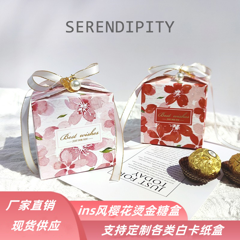 桜箔押しinsシンプル森系喜糖箱卸売り結婚式のプレゼント箱婚約キャンディー箱空箱