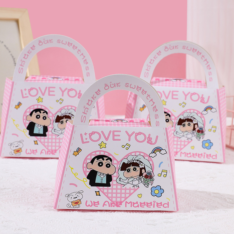 2024新型結婚喜糖箱婚約手提げ金クレヨンしんちゃんキャンディー箱ins風喜糖袋