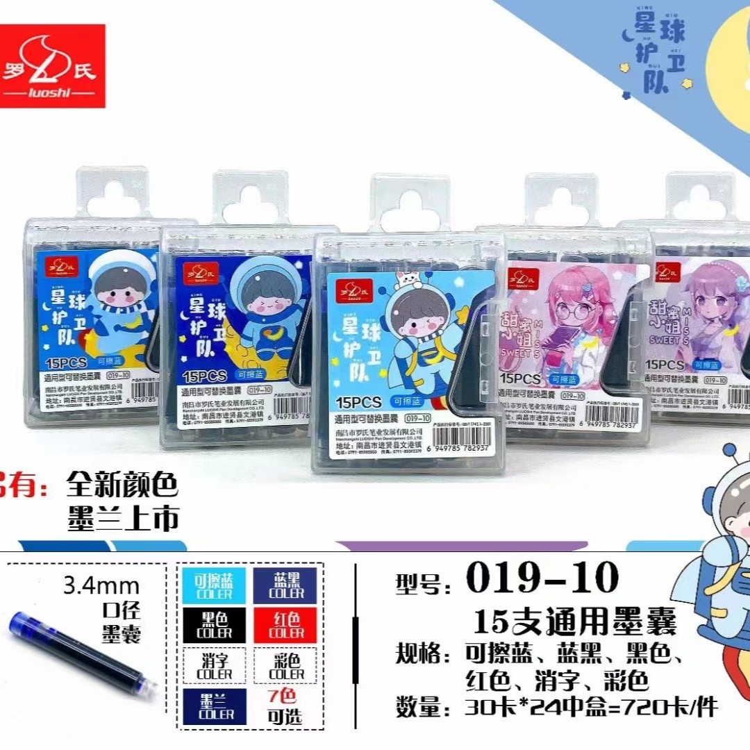 羅氏30本の墨嚢3.4口径の学生練習字は青墨青黒墨嚢を拭くことができ、墨嚢卸売りに代わることができる