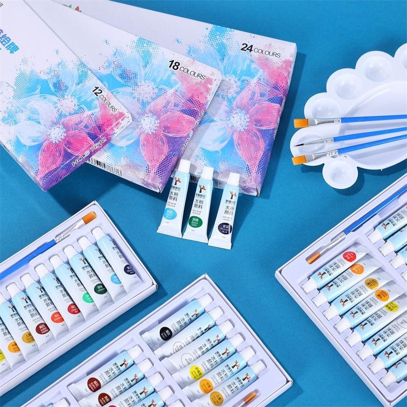 美琳美絵水粉顔料12色18色24色付属絵筆色艶潤