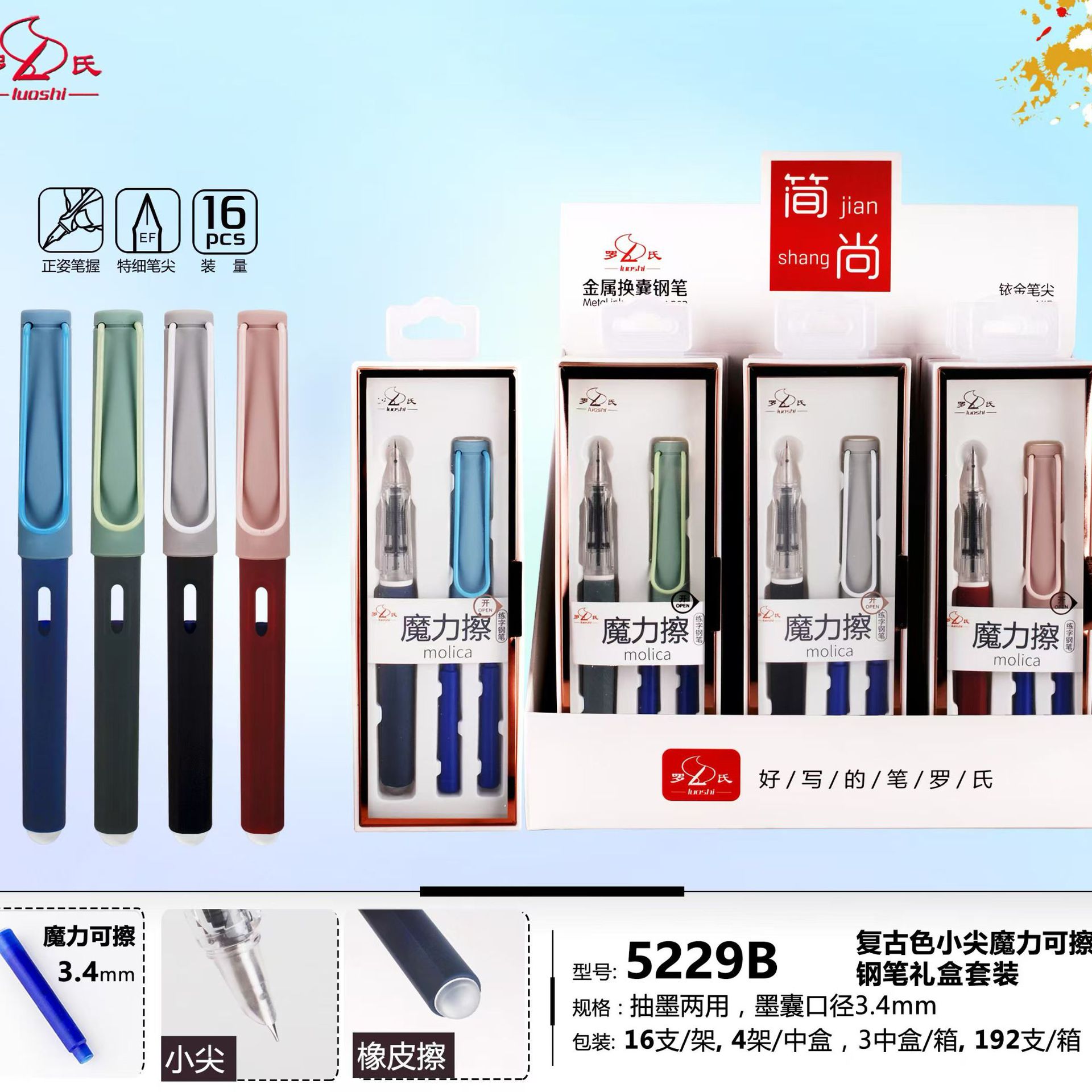 万年筆ギフトボックスセット小学生専用交換可能インク袋イリジウム金筆吸墨ギフト卸売り羅氏万年筆