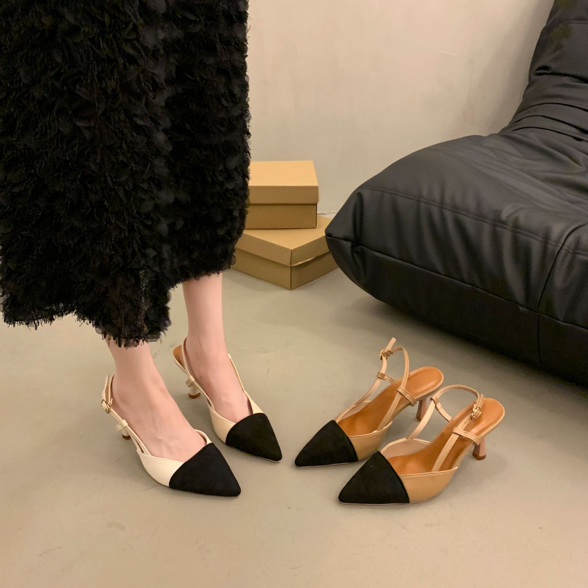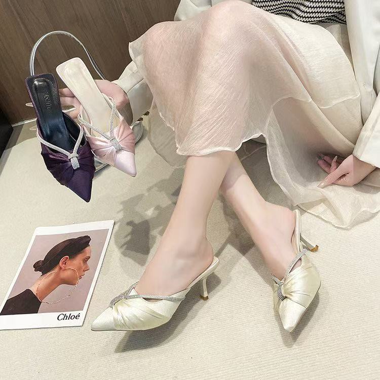 ハイヒールの女性2025年の夏の新型の大衆はフランスの尖った靴と小さい香りの風のドリルの靴を設計します。