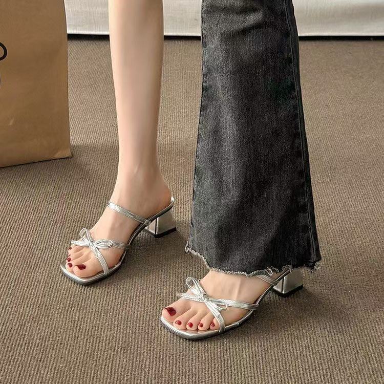 ハイヒールの女性は2025夏の新しいモデルを着ています。