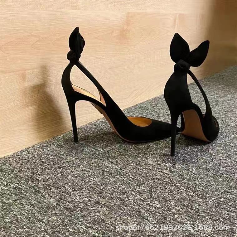 2025 ヨーロッパとアメリカの新しいベッドハイヒールセクシーな浅い口ウサギの耳ポインテッドトゥスティレットプロフェッショナルシングルシューズ包頭サンダル