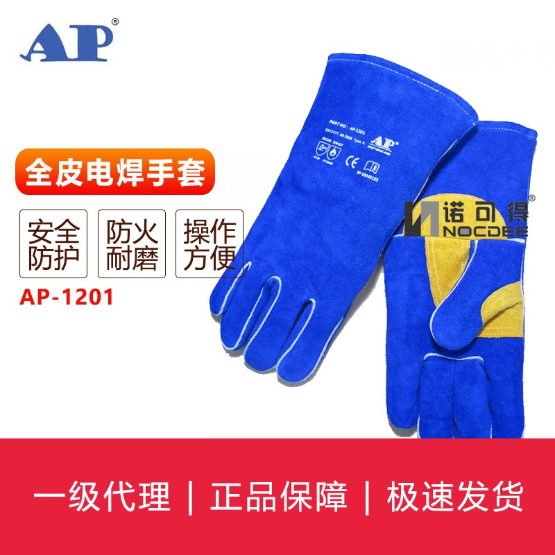 友盟AP-1201カラーブルー掌焼溶接手袋耐摩耗性防火断熱溶接工