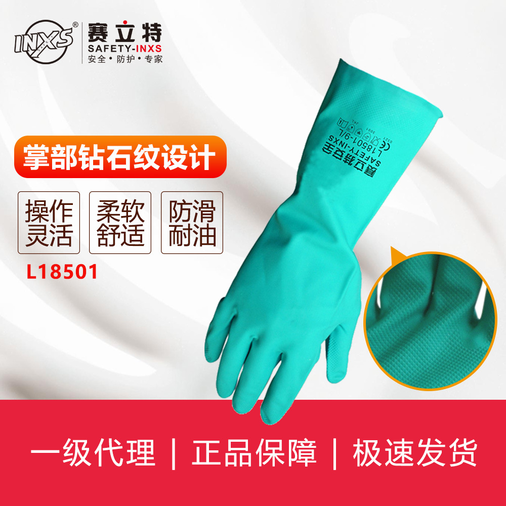 レースSAFETY-INXSニトリルフラット袖口手袋L18502耐油性