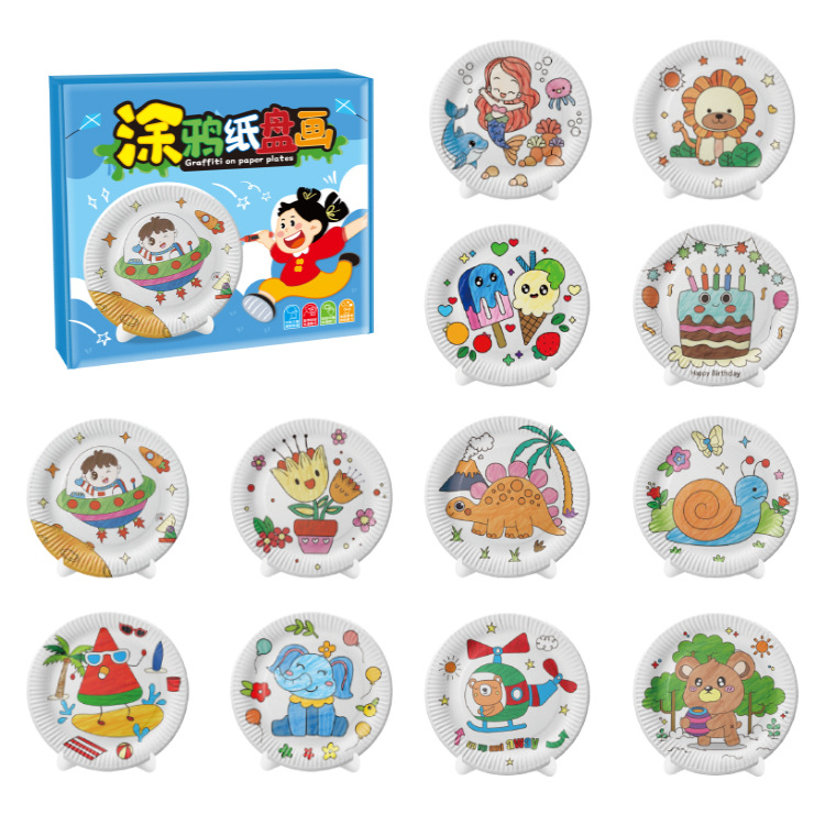 絵の紙の皿の使い捨ての白い紙の皿の幼児の簡単な画数は早くdiyの手の材料のおもちゃの手の絵を教えます。
