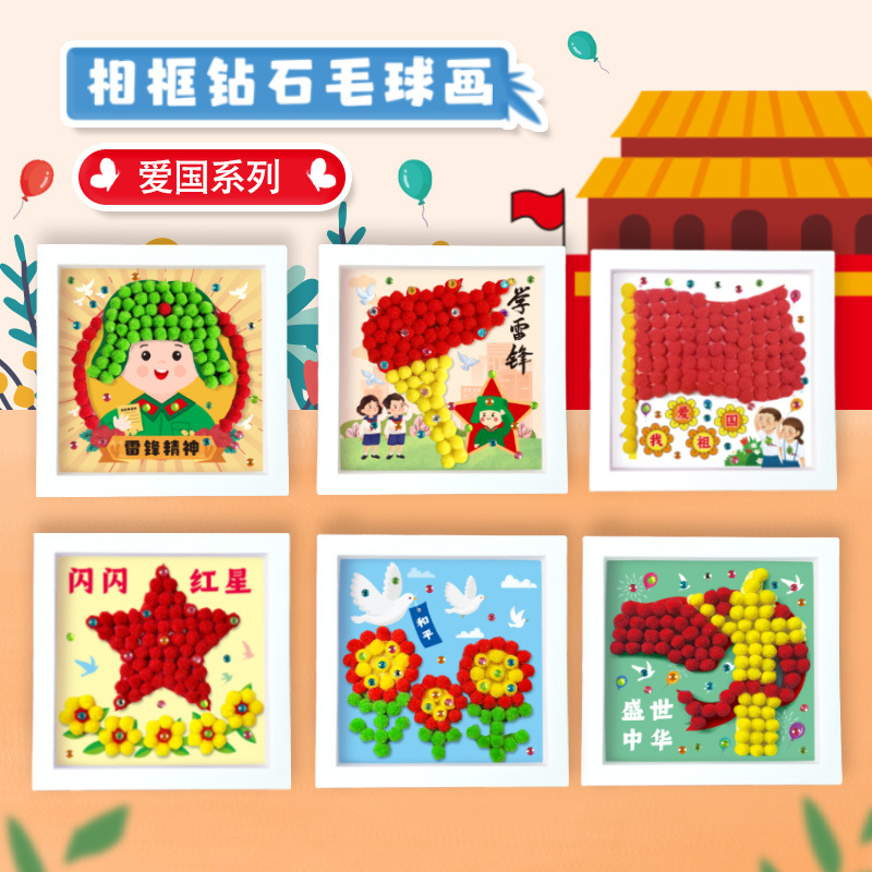 既製品DIY毛玉画ダイヤモンドペースト画幼児向け赤色愛国教育テーマ手作り材料パック建国記念日