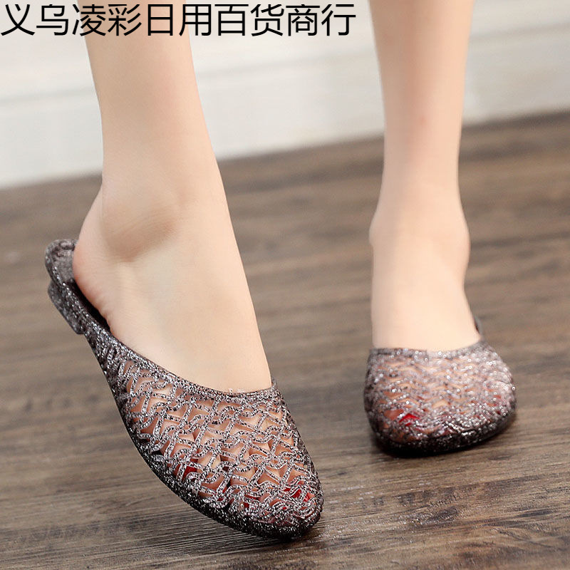 女性夏百合家室内水晶包頭洞スリッパ浴室防臭滑り止め純プラスチックビーチ靴周