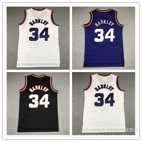 刺繍バスケットボールのユニフォーム太陽チーム34号バークレーバスケットボールのユニフォームSuns Jersey