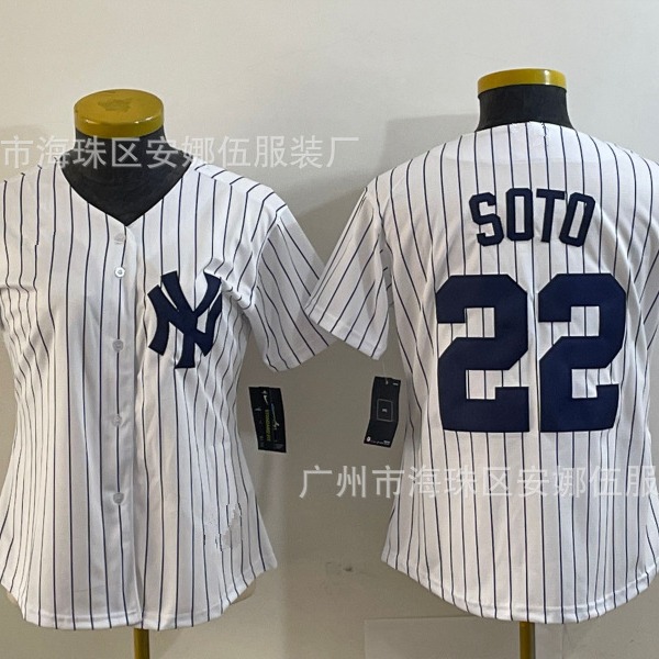 卸売り2024ヤンキースYankees女装野球服22号SOTO刺繍ユニフォーム日本チームファン版