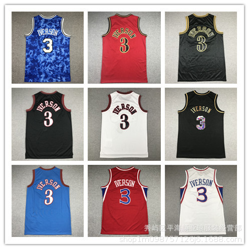 バスケットボール連盟のユニフォーム76人チーム3号アイバーソン刺繍メッシュバスケットボールのユニフォーム76ers Jersey