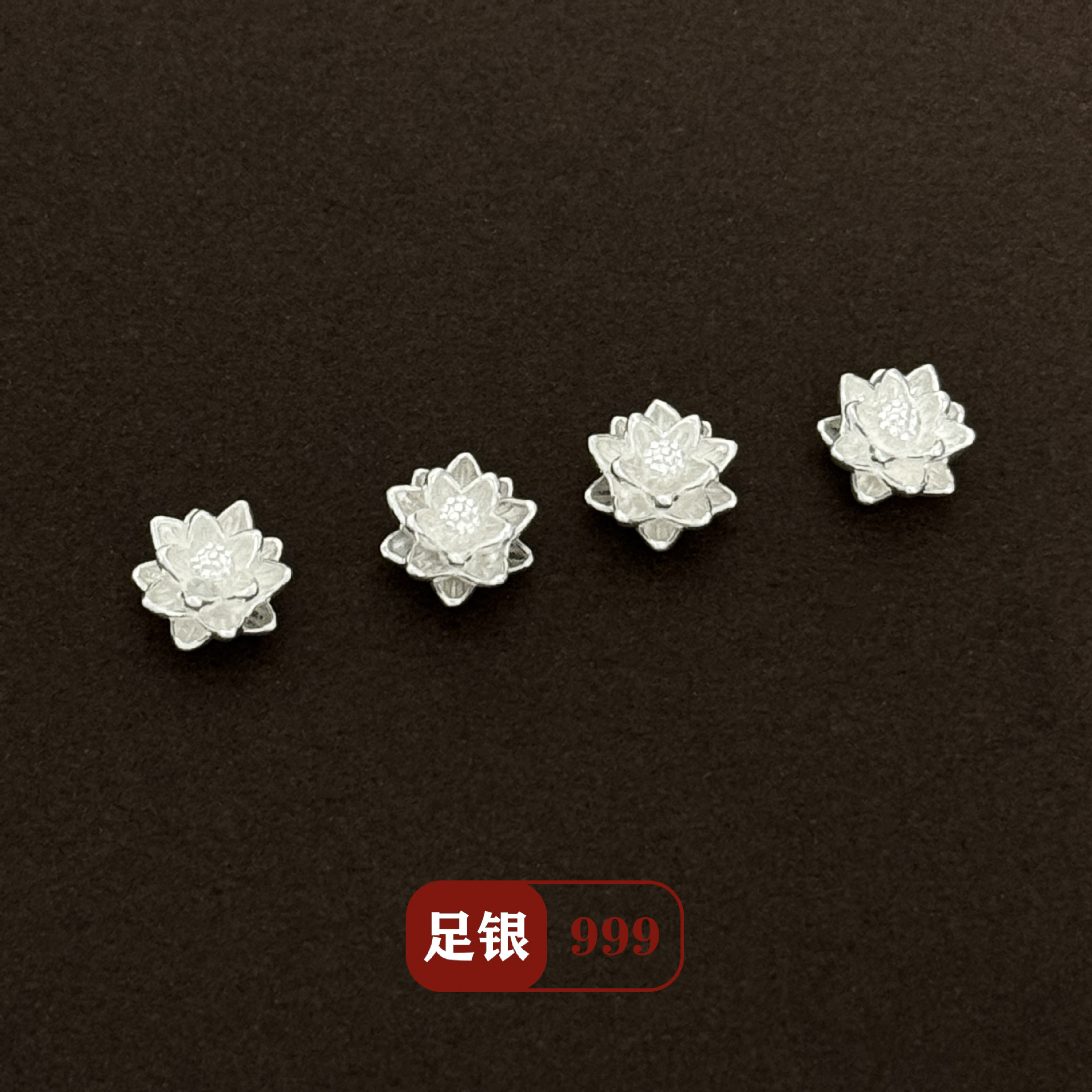 S999足銀3d硬質銀蓮の花隔珠DIY手作りひも散珠銀部品編みアクセサリー材料