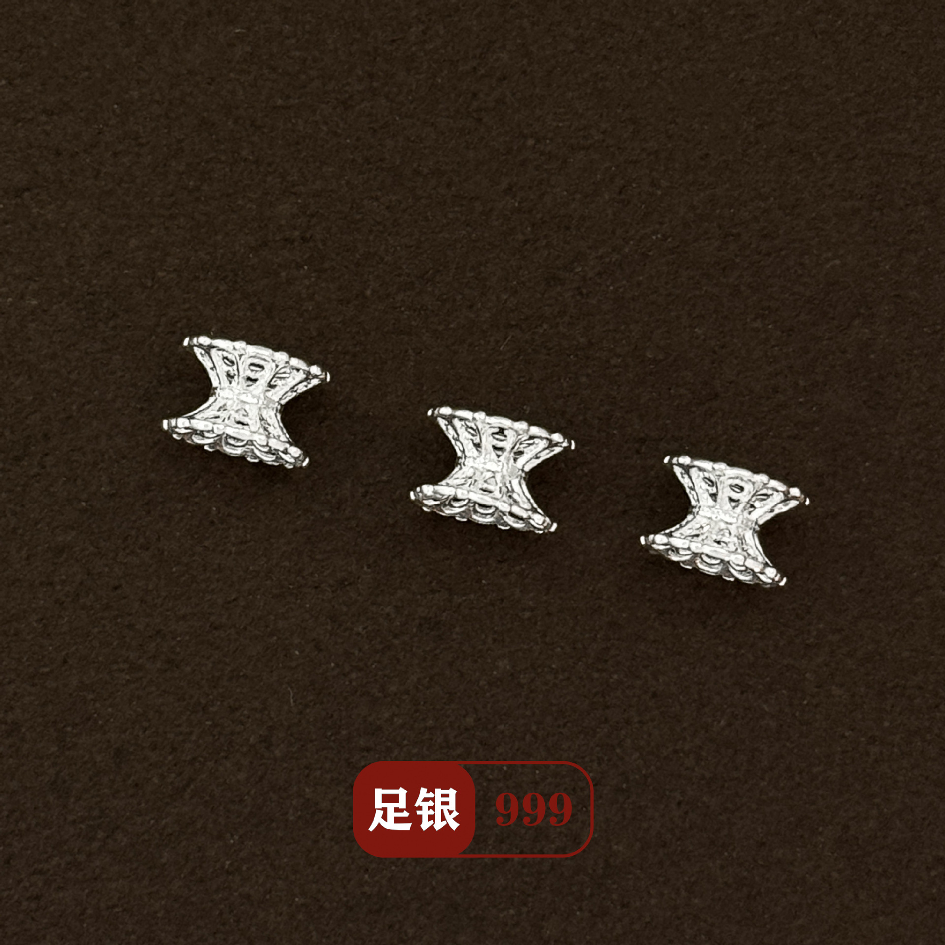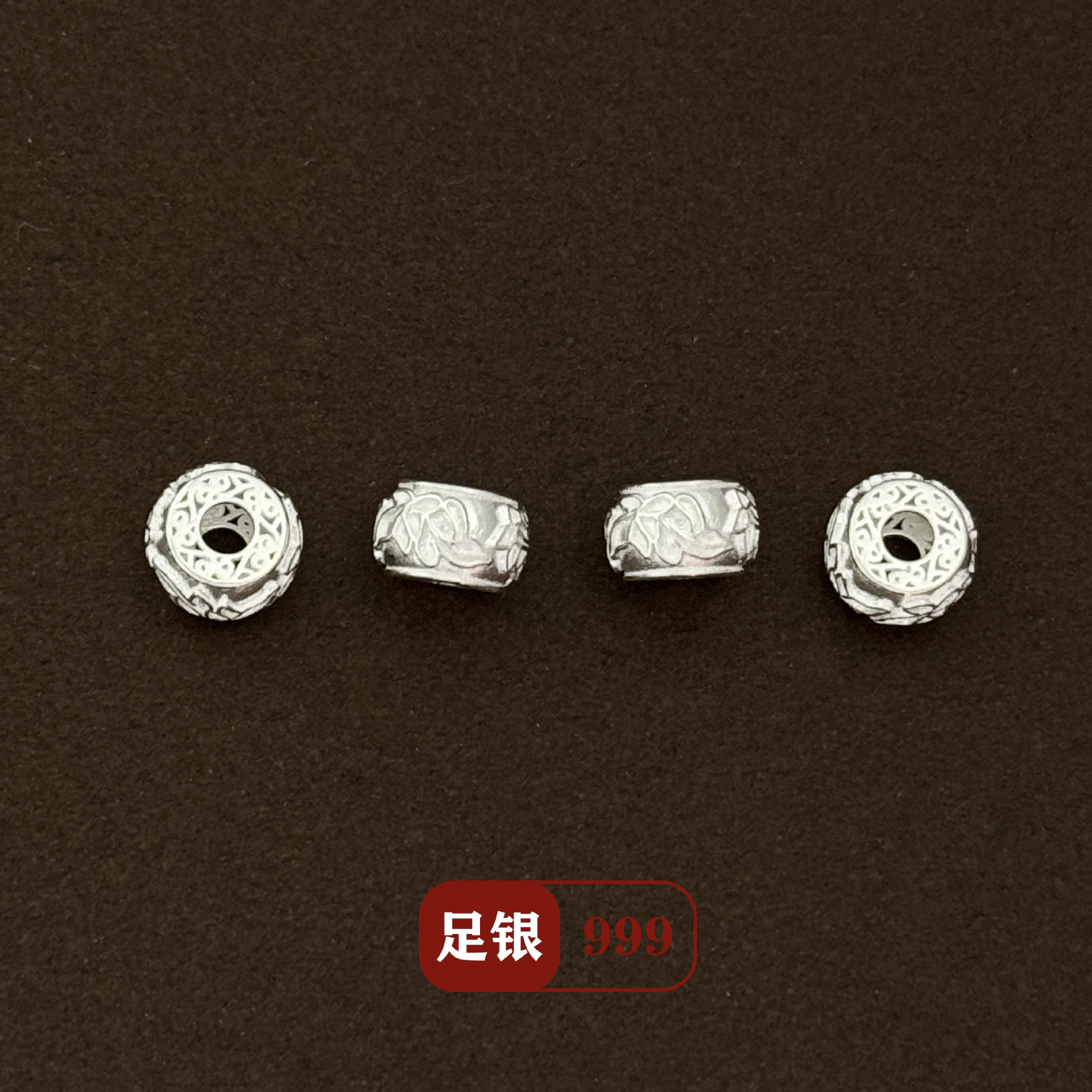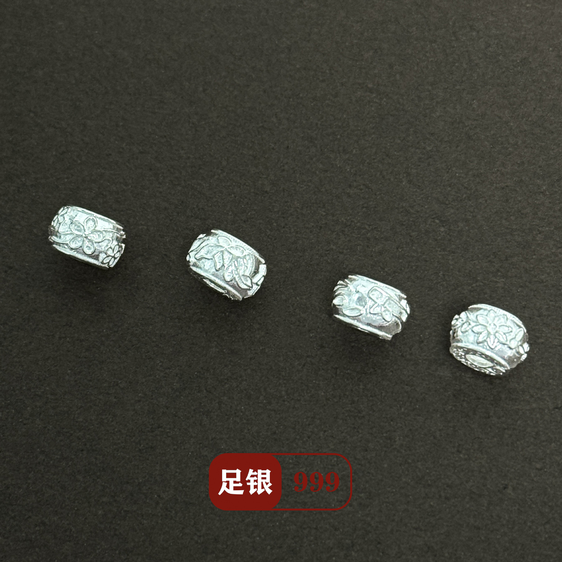 S999足銀3dハード銀国風隔珠桶珠diyブレスレット数珠銀飾り文遊び紐散珠部品