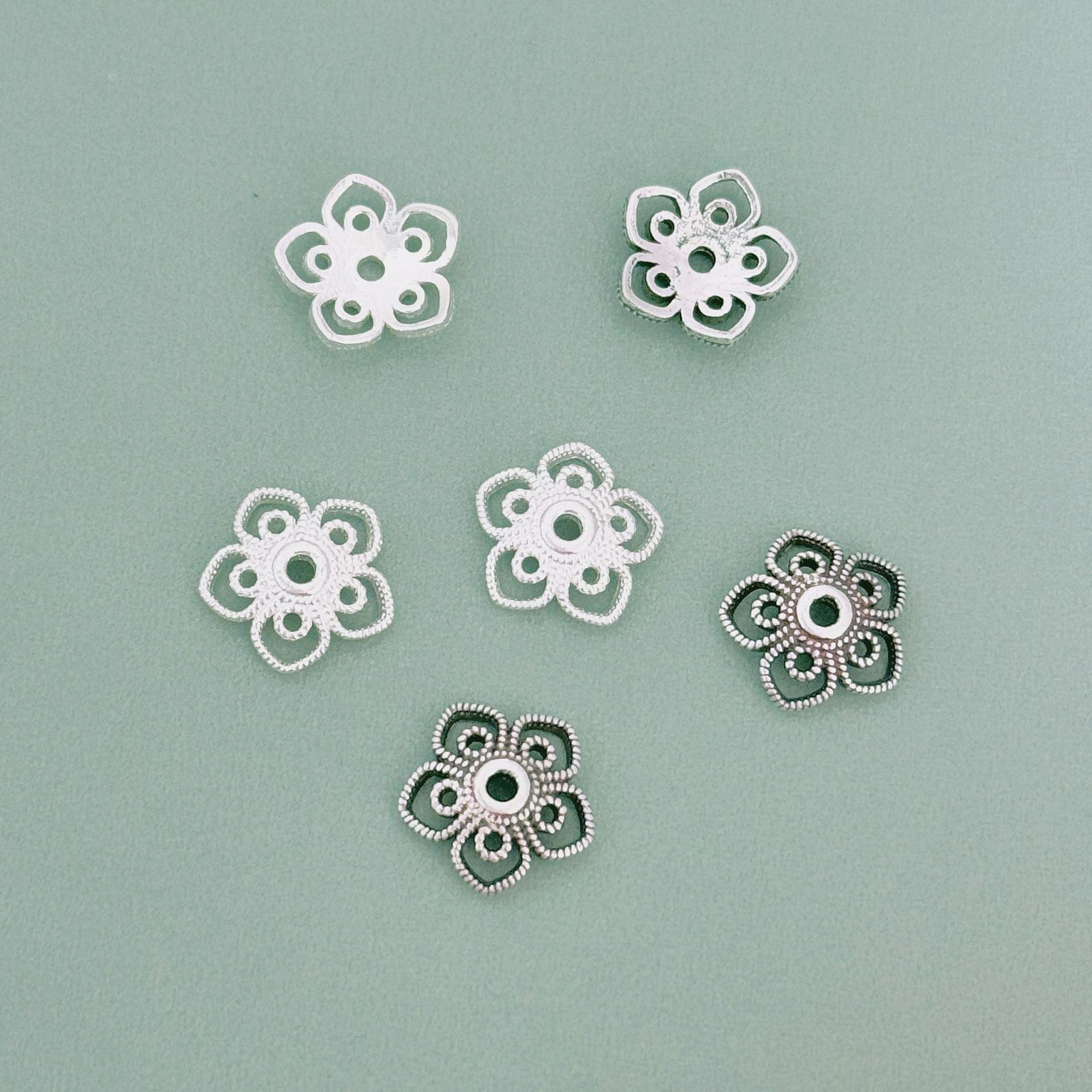 S999足銀泰銀花托花帽スペーサービーズトートビーズDIY仏珠水晶ブレスレットアクセサリー