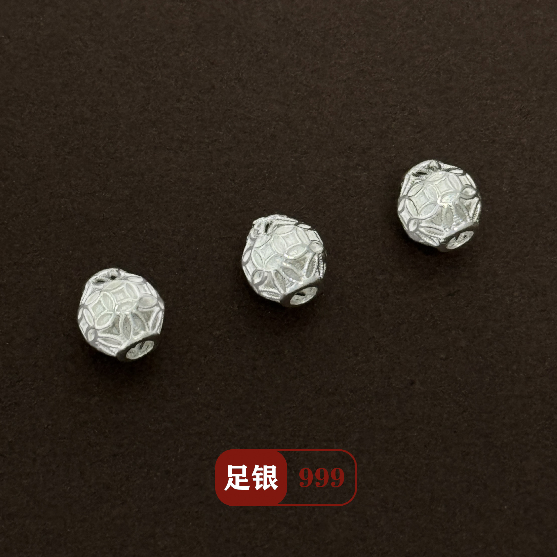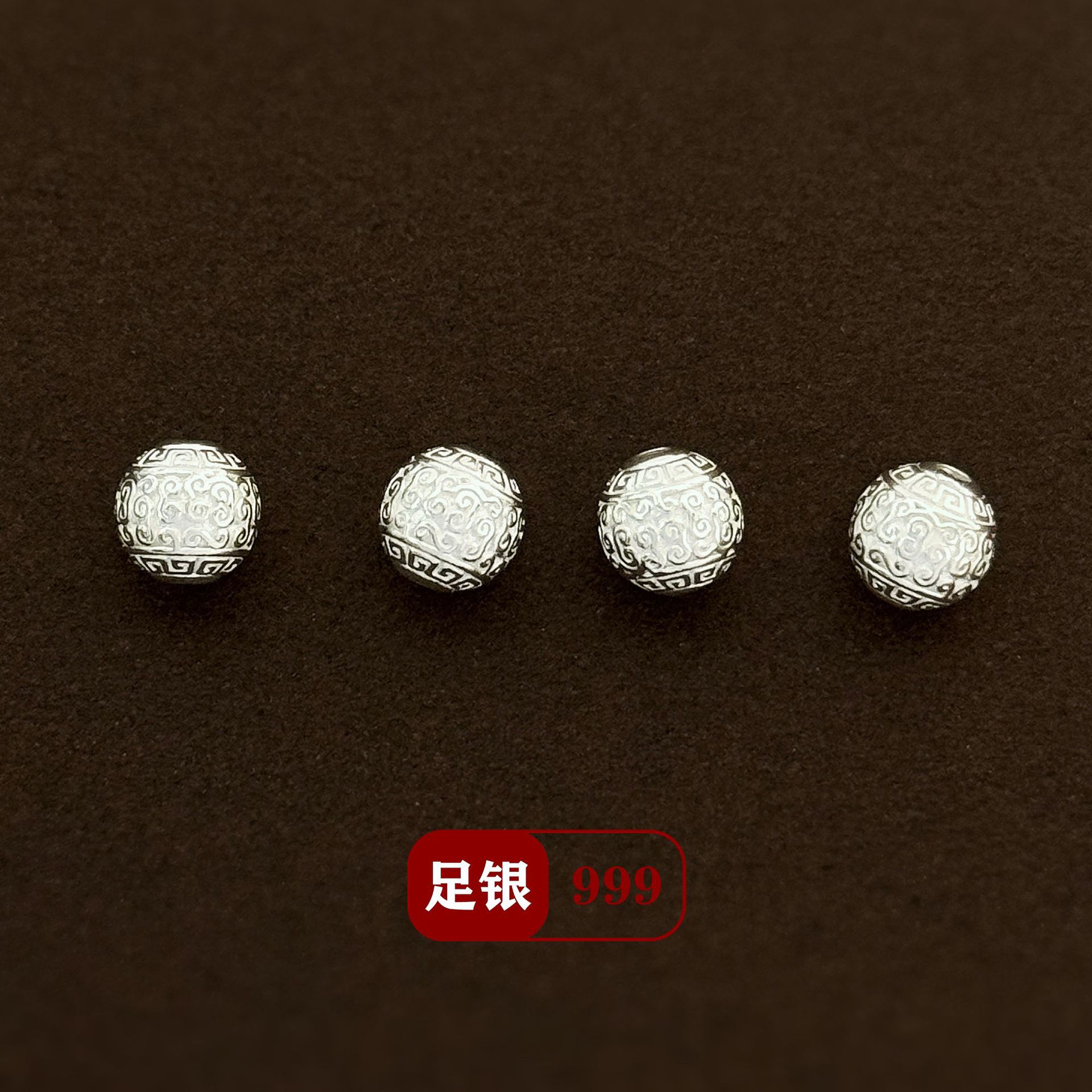S999足銀3dハード銀隔珠国風ビーズdiyブレスレットビーズ銀飾り文遊びロープ散珠部品